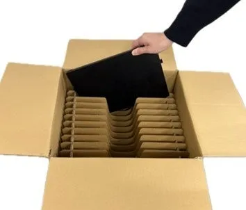 最大10台のモバイルPC・タブレット端末を1つの容器にまとめることで、個別の梱包作業が不要になります。この効率化により、梱包作業の省力化を図ることが出来ます。