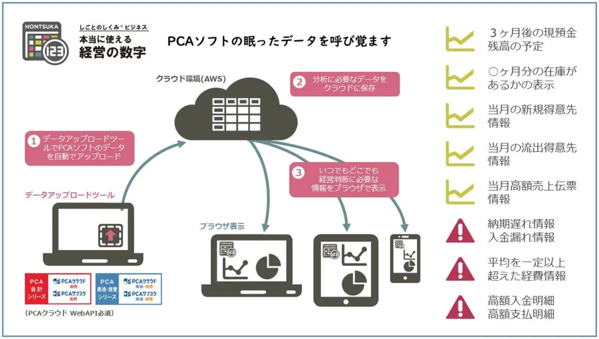 PCAは『本当に使える経営の数字』を同社の製品に連携させ、共同でプロモーションを行います。これにより、PCAソフトユーザー企業は、手持ちのデータをより効率的に活用し、ビジネスの成長に繋げることが期待されます。