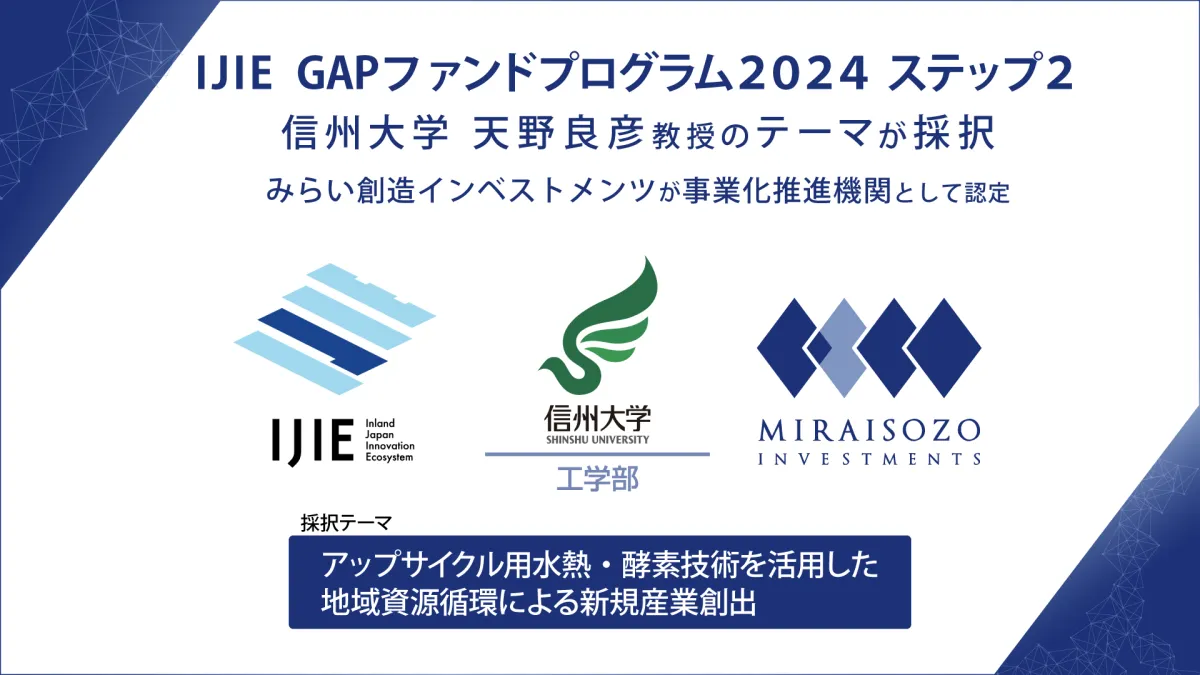 信州大学の天野良彦教授が、IJIEのGAPファンドプログラム2024 ステップ2において採択されたことは、地域資源を活用した新規産業の創出という重要なテーマへの一歩となります。本プロジェクトは、環境に優しい持続可能な「食」の実現を目指し、食品業界でのフードロス対策や持続的な農業への貢献を目指しています。
