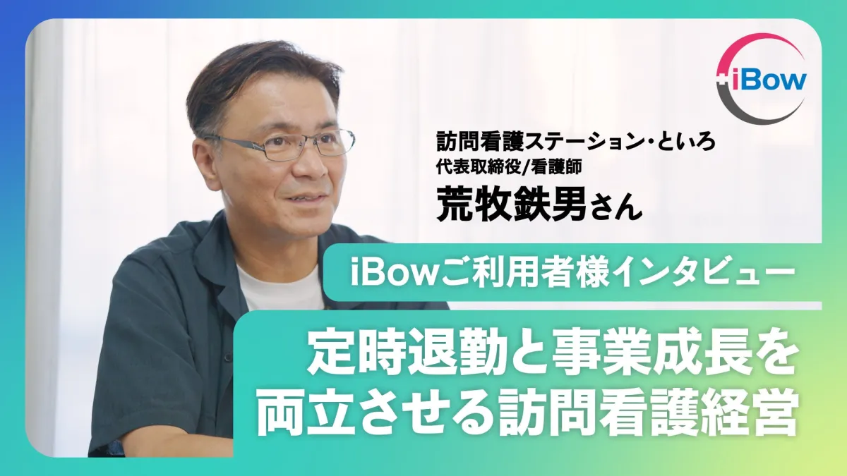 実際に「iBow」を利用しているスタッフからは、「業務が楽になり、さらに患者さんと向き合う時間が増えた」という声が多く寄せられています。これにより、訪問看護の質が向上し、利用者からの信頼も厚まります。スタッフの幸福度が高まることで、離職率は低下し、組織全体の成長にも寄与しています。