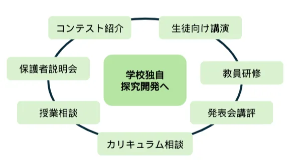 カリキュラム相談や授業相談、教員研修など、さまざまな支援を行っています。