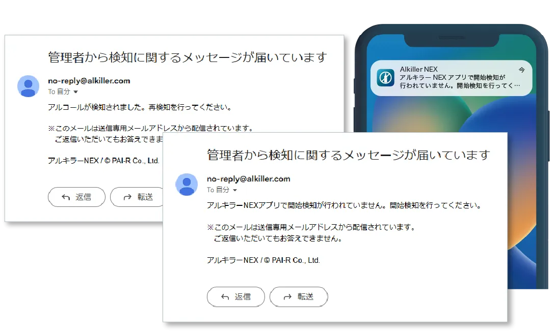 アルコールチェックは、企業における安全管理の重要な一環です。しかし、従来の方法では検知漏れや確認漏れが多く、手動での確認作業が煩雑で負担が大きいという管理者からの声が挙がっていました。また、従業員がアルコール検知を忘れたり、報告が遅れたりすることで、企業の安全管理にリスクがつきまとっていました。これらの問題を解決し、スムーズな業務運営を実現するために、アルキラーNEXは「自動実行機能」を世に送り出します。