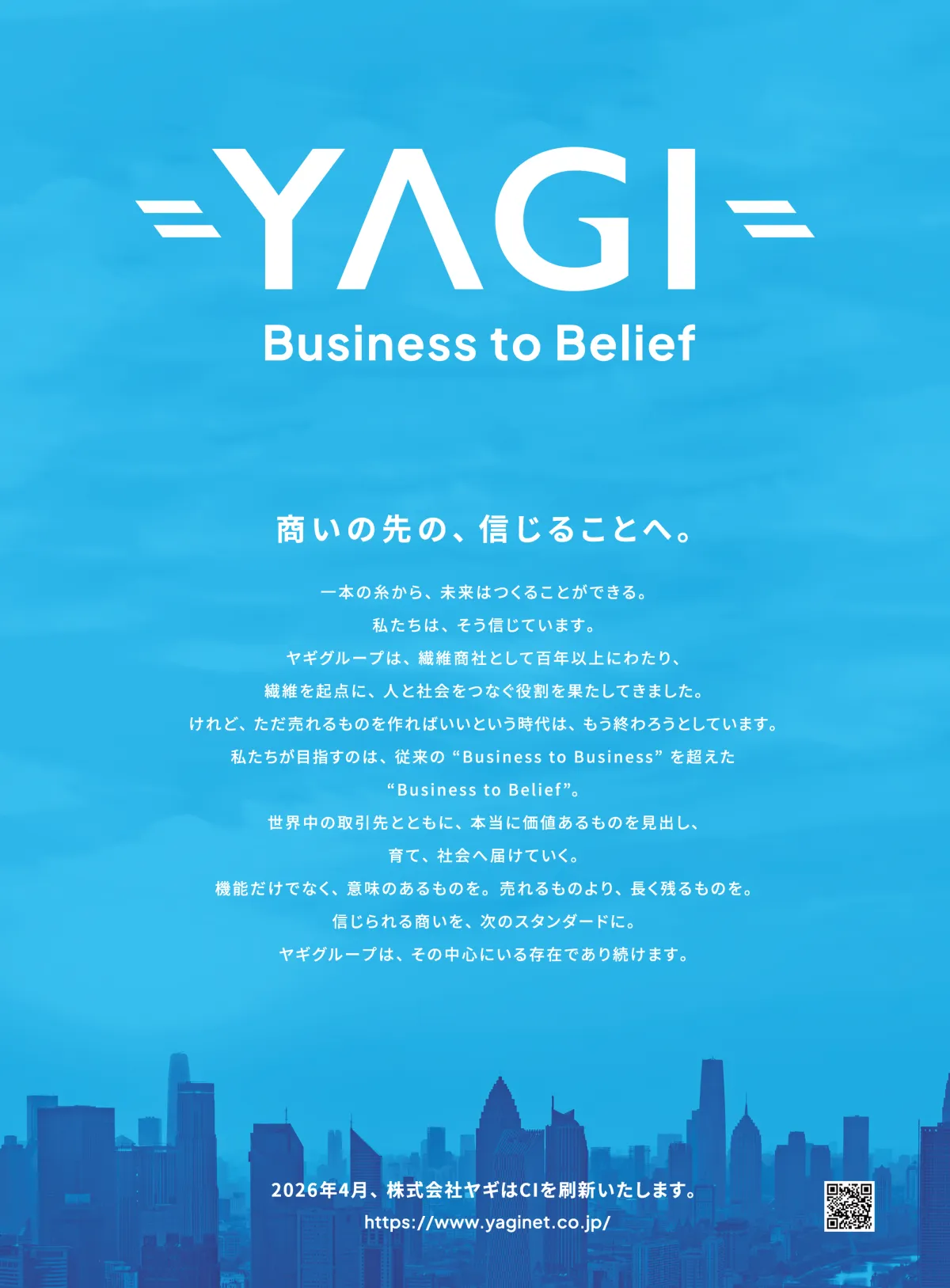 1883年の創業から130年以上の歴史を持つ株式会社ヤギ(本社:大阪市中央区・東京都港区)は、2026年の企業活動の新たなステージに向けて、新しいコーポレートロゴとタグラインを策定しました。この決定は、同社が長い歴史の中で培ってきた価値観を新たに見直し、未来を見据えた姿勢を示すものです。