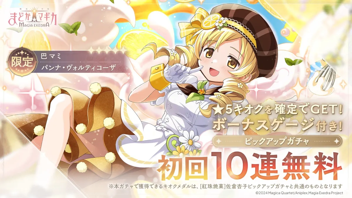 特に注目すべきは、人気キャラクターの巴マミが新たに限定★5キオクとして登場することです。彼女の名前は[パンナ・ヴォルティコーザ]巴マミ(CV:水橋かおり)。このキャラクターは、ファンにとって待望の新たなプレイアブルキャラクターで、限定のピックアップガチャで手に入るチャンスがあります。