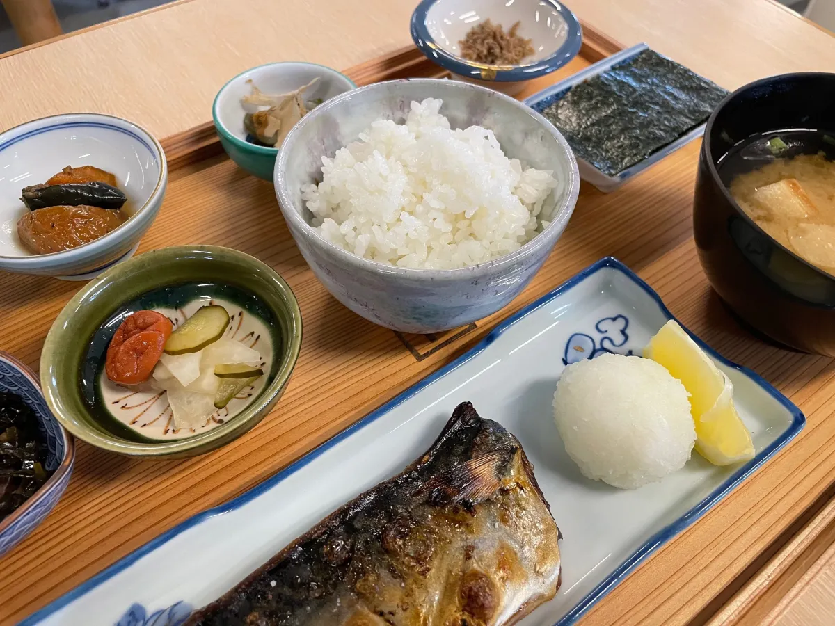 メニュー構成自体は既存の「トトンの朝定食」をベースにアレンジ。富山のブランド米『富富富』を使用し、鯖の干物、煮物、じゃこ、海苔、梅干し、ぬか漬け、松前漬けといった、ご飯に合うおかずが丁寧に盛り付けられています。