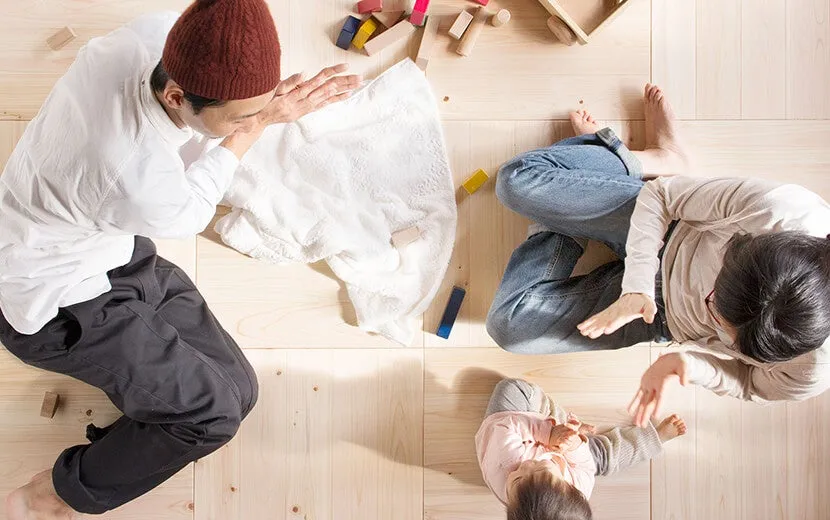 ユカハリ・タイルには自然素材ならではの特徴があり、節の有無や数にバラつきがあります。また、環境によっては反りや変形が生じる場合もありますので、設置場所には十分な配慮が必要です。木材の温もりを感じられる素敵な空間を演出するためには、正しい取り扱いが大切です。