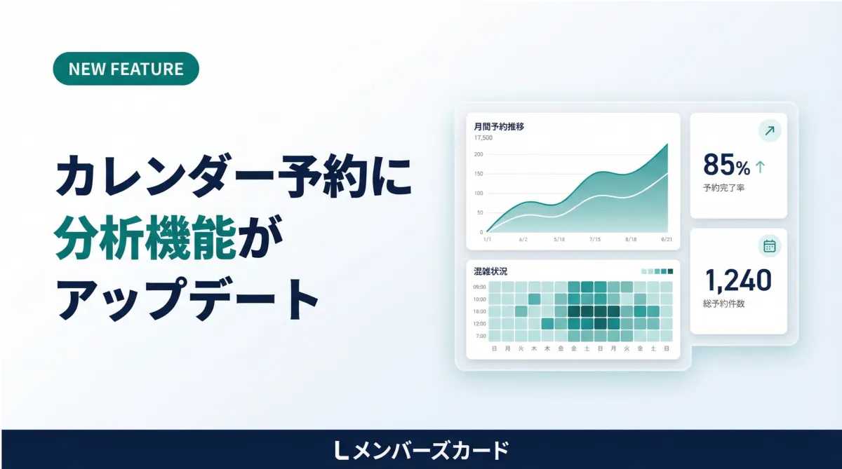 最近、月末に行っていたExcelを使った予約データの集計が不要になるという、画期的な新機能が登場しました。合同会社Oblivionが提供するLINEデジタル会員証『Lメンバーズカード』は、店舗様向けにカレンダー予約機能を使ったデータ分析を自動で行う「予約分析ダッシュボード」をリリースしました。これにより、運営者は手作業での集計から解放され、データの視覚化が簡便に行えます。