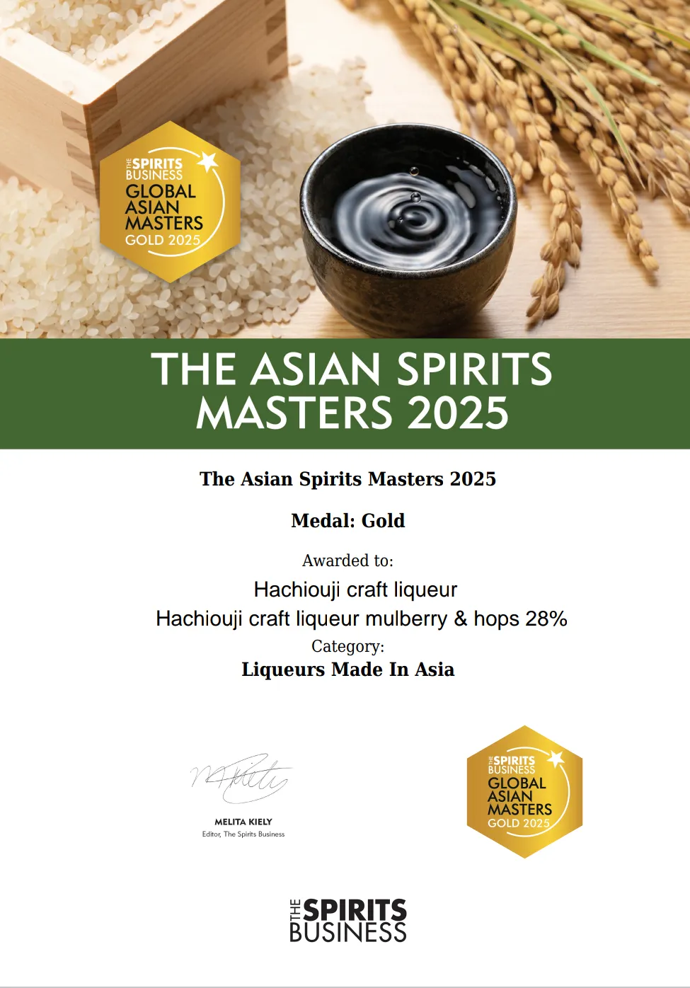 東京都八王子市に拠点を置く八王子craft liqueurが、2025年5月1日に開催された"The Asian Spirits Masters 2025"で、日本企業として唯一、リキュール部門での金賞を獲得しました。その受賞作は「mulberry & hops 28%」であり、アジアでの最高評価を得たことを誇りに思います。