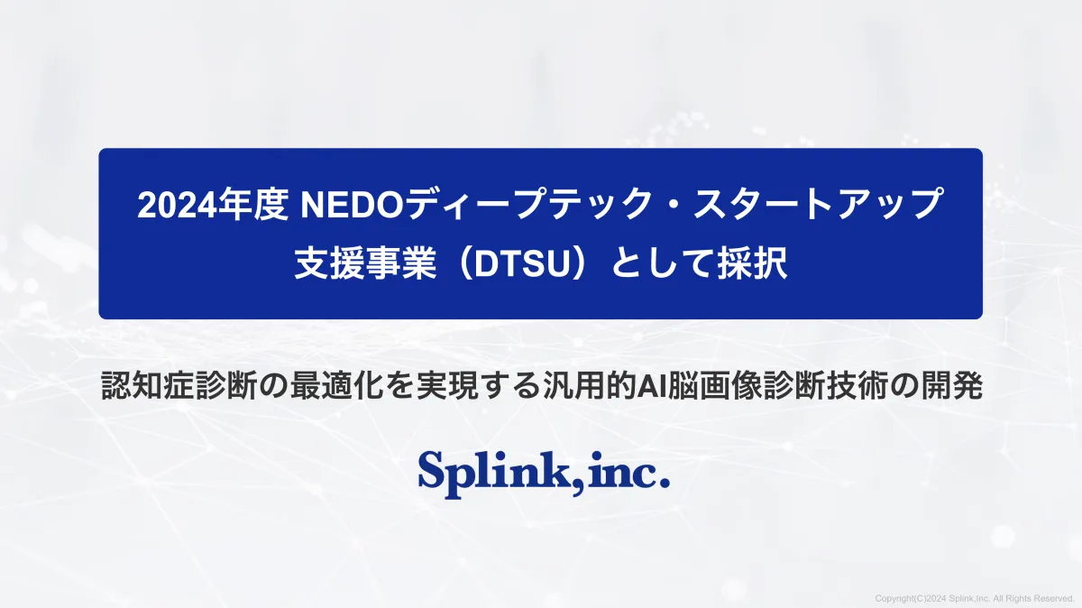 株式会社Splinkは、ブレインヘルスケアに特化したスタートアップであり、医療AIの最前線で活動しています。この度、同社は国立研究開発法人NEDOの「ディープテック・スタートアップ支援事業(DTSU)」において、「認知症診断の最適化を実現する汎用的AI脳画像診断技術の開発」が採択されました。このプロジェクトでは、認知症診断フローにおける課題を解決し、医療現場への新たな診断ソリューションを実現することを目指しています。