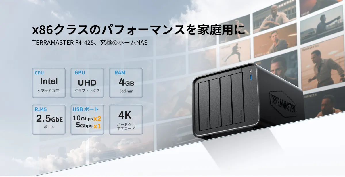 2025年9月16日、ネットワークストレージをリードするTERRAMASTERは、家庭およびSOHO環境向けに最適化された最新の4ベイNAS「F4-425」を発表しました。この製品は人気モデル「F4-212」の後継として登場し、従来のARMアーキテクチャからIntel x86プラットフォームに進化を遂げました。これにより、エントリークラスながら最大40%の性能向上が実現されています。