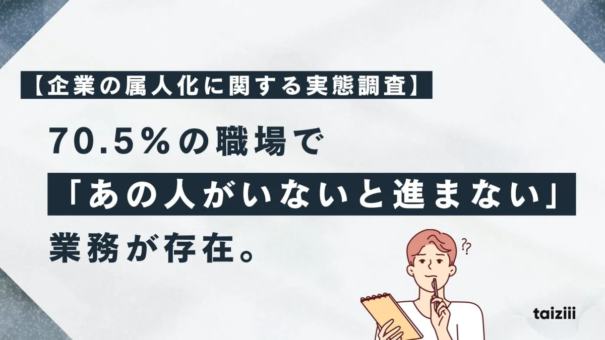 企業における業務の属人化は、近年ますます重要な課題となっています。株式会社taiziiiが行った調査によると、70.5%の職場で「この業務はあの人にしか分からない」「あの人がいないと進まない」といった属人化した業務が存在することが明らかになりました。