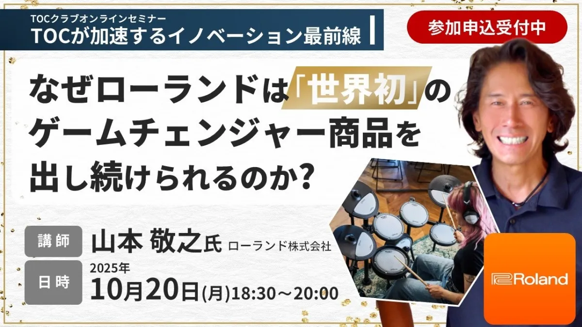 2025年10月20日、Goldratt Japanが主催するオンラインセミナー「TOCクラブ」で、ローランド株式会社の山本敬之氏がこの問いに答えます。