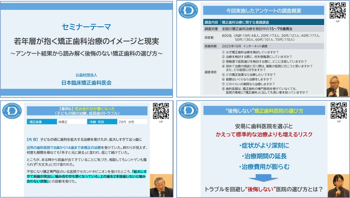 この調査結果をもとに、矯正歯科医が参加する市民向けの動画が2026年2月4日よりYouTubeで公開されます。この動画では、調査結果を踏まえた矯正歯科治療の選び方や注意点について、専門家がわかりやすく解説します。特に、若者に多い実際のトラブル事例を紹介し、どのような点に気をつけるべきかを提案しています。