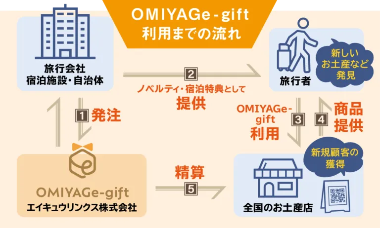 「OMIYAGe-gift」とは、観光券をデジタル化し、観光客が利用しやすくするための仕組みです。エイキュウリンクス株式会社が提供するこのサービスは、観光券の発行や実際の店舗での利用をスムーズに進めることを目的としています。これにより、観光客が手軽に地元のお土産店や飲食店で利用できるクーポンを受け取ることが可能になります。