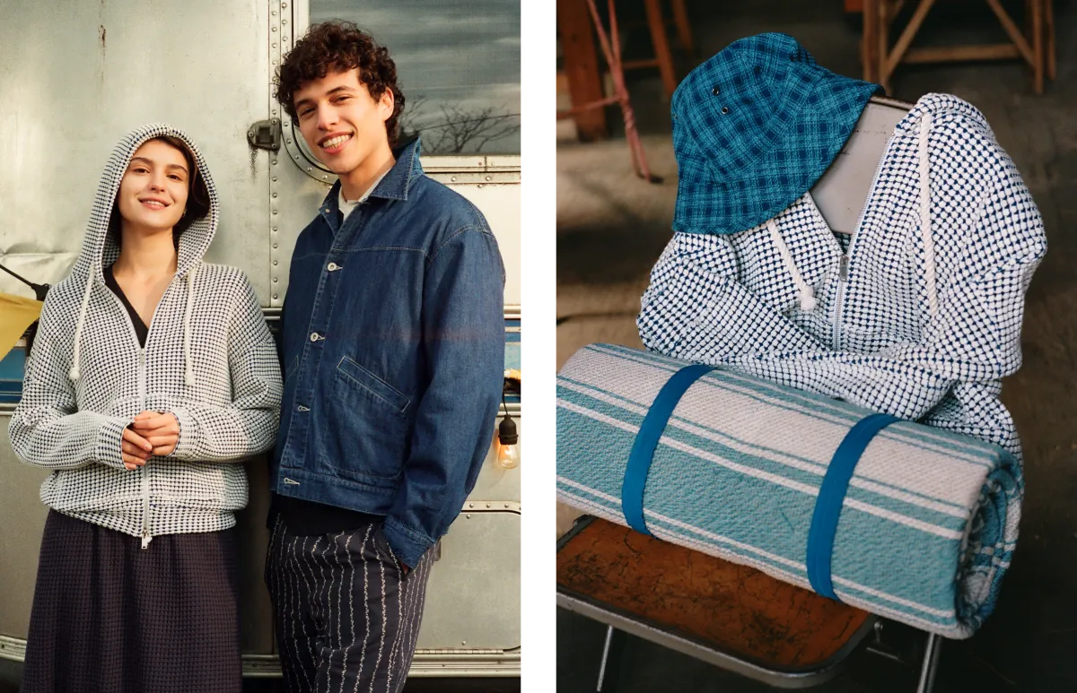素材面でも、国内でも数台しかない特別な編み機を使用したニッターと共同開発した代表的な「BIG WAFFLE」を中心に、多様なファブリックが組み合わされています。軽量素材と豊かな表情のファブリックを組み合わせることで、シーズン感を表現。さらに、環境への配慮からオーガニックコットンやリサイクルポリエステルを使用しており、着心地の良さとサステナビリティの両立が図られています。