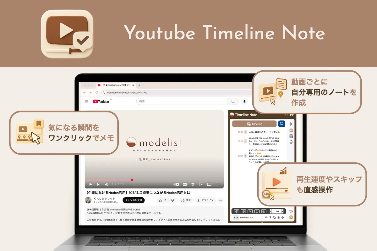 2025年3月23日、株式会社Modelistが発表したChrome拡張機能「YouTube Timeline Note」は、YouTube動画の視聴体験を革新するツールです。この拡張機能を使うことで、ビジネス、学習、趣味といったさまざまなシーンでの情報管理が格段に向上します。