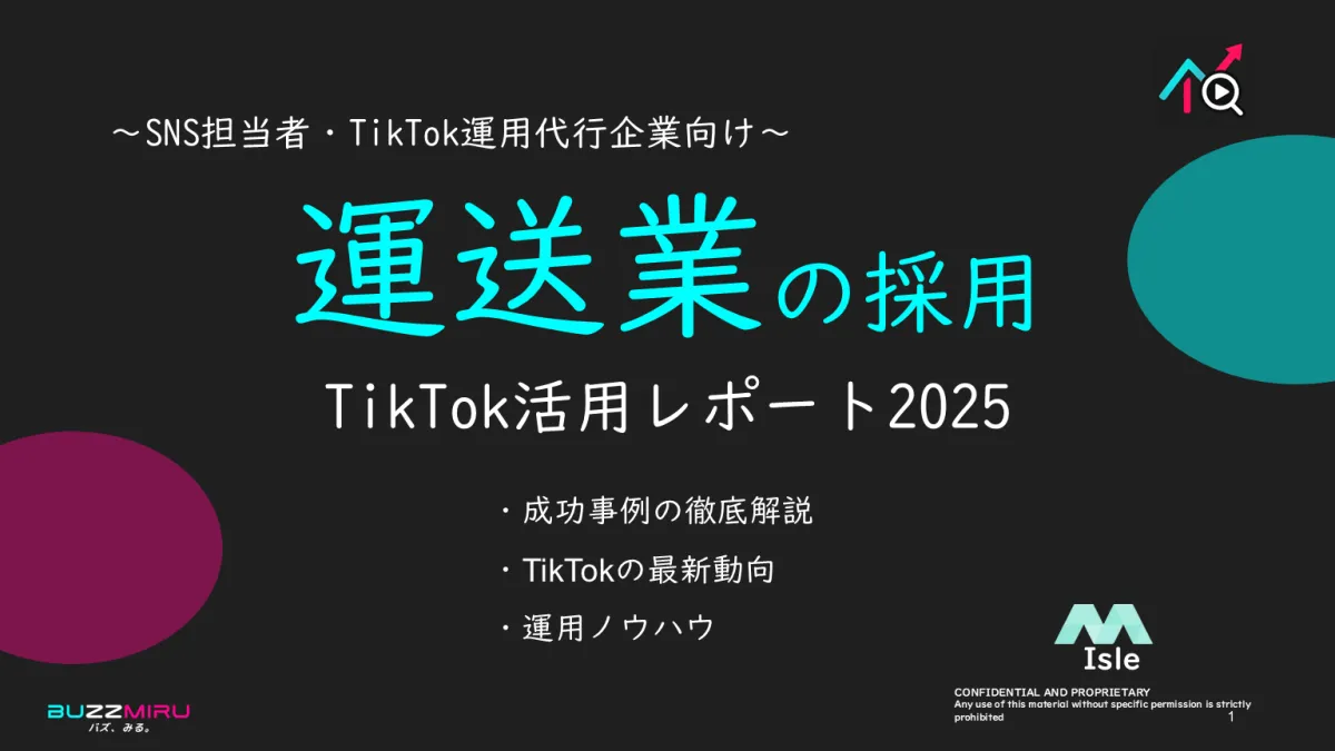 運送業界の企業がSNSを活用し、集客や売上を伸ばすために欠かせない存在となるのがTikTokです。株式会社Isleが提供する「BUZZMIRU」は、TikTok分析を通じて、より効果的なマーケティング戦略を構築する手助けをしています。この度、Isle社は運送業のSNS担当者を対象に、2025年版のTikTokトレンドレポートを無料で公開しました。