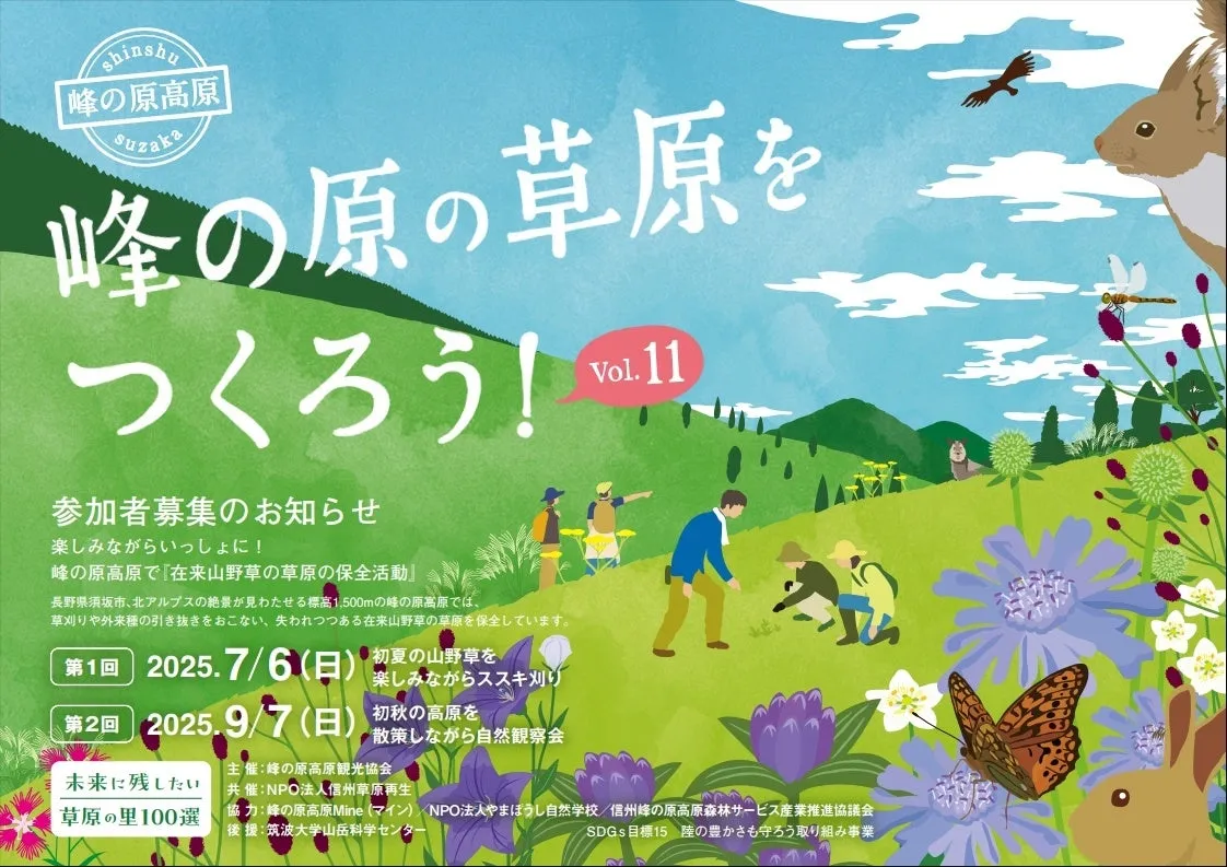 2025年7月6日、長野県須坂市にある峰の原高原にて、希少な草原を保全するイベント「峰の原の草原を作ろう!」が開催されます。このイベントは、草原再生をテーマにしており、皆で力を合わせて在来山野草の保全活動を行うことを目的としています。昨今、草原はその面積を著しく減少させており、90%以上の草原が失われたとのこと。このような背景を受け、草原の保全はますます重要視されています。