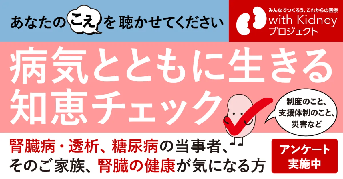 一般社団法人ピーペック(所在地:東京都世田谷区)が運営するウェブサービス「じんラボ」では、腎臓病に関わる方々の幸せを追求するため、10周年を迎えた「これからの医療 with Kidneyプロジェクト」を発表しました。このプロジェクトに伴い、慢性腎臓病(CKD)や糖尿病を患う方々、そしてそのご家族を対象にした第17回アンケート調査を、2025年2月28日から実施します。