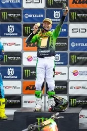 ロマン・フェーブル選手はKawasaki Racing Team MXGPに所属し、第7戦のポルトガルラウンドで早々とランキングトップに立ちました。その後も激しいライバルたちとの争いを繰り広げながら、一度も首位を譲ることなくシリーズを駆け抜けました。彼はシリーズトータルで5度の総合優勝、16度の表彰台を獲得するという素晴らしい安定感を見せ、満を持してチャンピオンに輝いたのです。