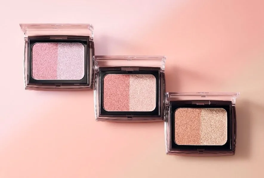 「ニュアンスコントラストチークカラー」は、発色の良いカラーとツヤのあるカラーを組み合わせた2色セットのパレットで、全3種類が展開されます。各セット価格は1,980円(税込)で、通信販売および直営店舗で購入可能です。2色を混ぜるだけで、肌の内側から滲み出るような自然な血色感を生み出し、健康的な「幸せ顔」を演出します。
