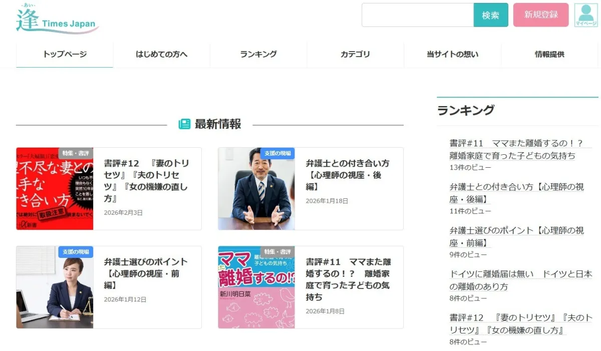 『アイタイムズジャパン』には多様なコンテンツが用意されています。具体的には、当事者の体験談、支援現場の声、関連書籍の紹介、更には制度解説や国内外の比較コラムなどが揃っており、離婚や親子断絶に関心を持つ読者には非常に有益な情報を提供します。また、改正民法に関連する知識も含まれており、2026年4月の施行を控える中で、重要な情報をしっかりと把握することができます。