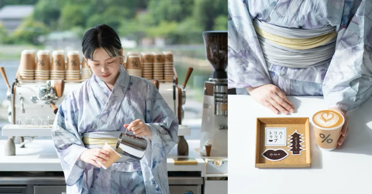 「Her lip to」と「% ΔRΔBICΔ」のコラボレーションは、コーヒー好きにはたまらないイベントです。ぜひ、京都の街並みを眺めながら、Her lip toの浴衣を着たバリスタが淹れるこだわりのコーヒーを味わってみてください。