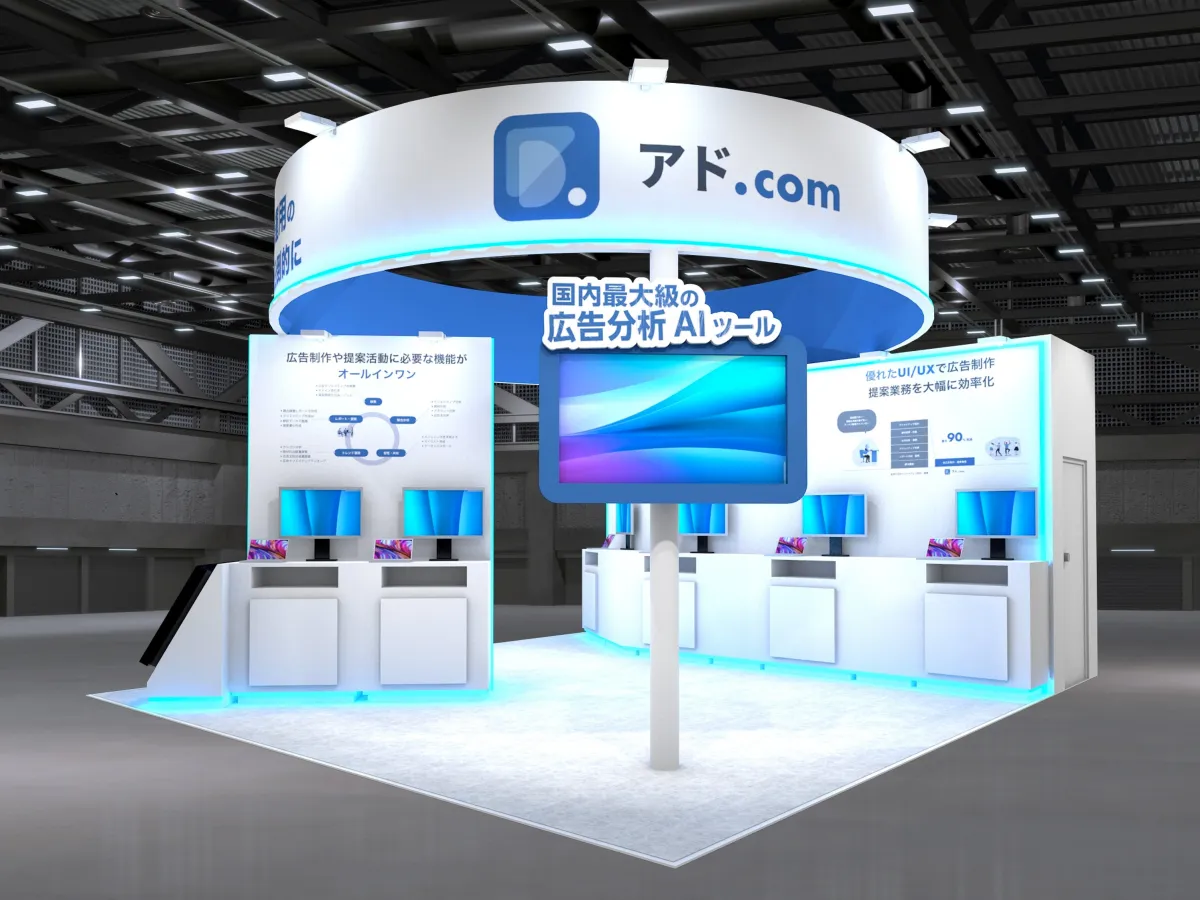 アドドットコムのブースでは、広告リサーチとAIツール「アド.com」を体験できる『無料体験会』を開催します。この機会に、最新の生成AI機能を実際に試すことができ、リアルタイムでクリエイティブが生成される様子を実感することができます。