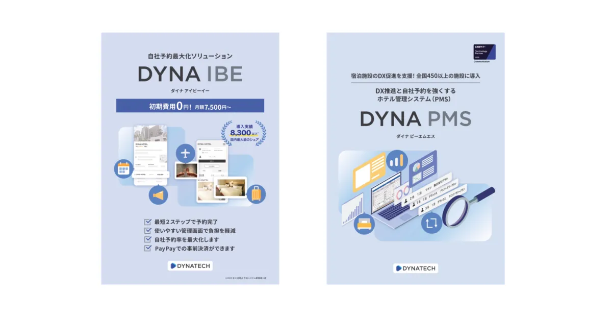 展覧会では、バリューコマースが提供する主要な宿泊予約システム『DYNA IBE(ダイナ アイビーイー)』とホテル管理システム『DYNA PMS(ダイナ ピーエムエス)』が中心に紹介されます。これらのシステムは、宿泊施設が直面するさまざまな課題を解決するために設計されており、それぞれの機能に特化しています。