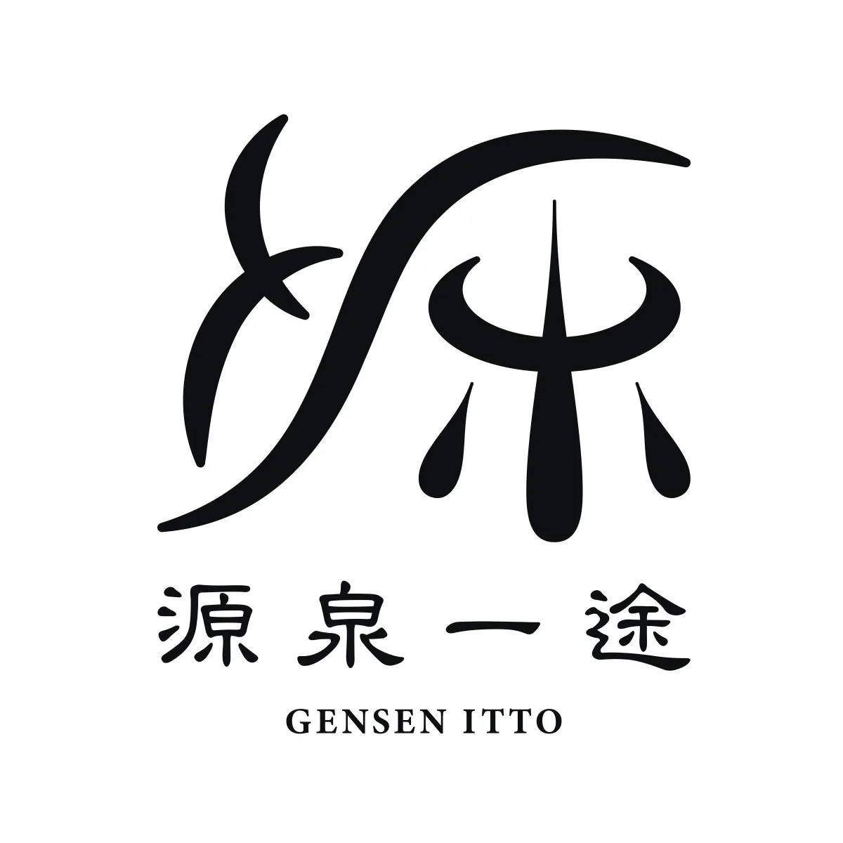『源泉一途』のロゴは、源泉が湧き出る様子をデザインに込めています。温泉・食事・癒しを表す三つの雫が特徴で、草木が風に揺れる姿を通じて温泉の魅力を象徴的に表現されています。