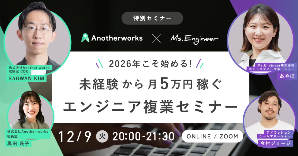 2026年、AIやITが進化を続ける中、女性たちがエンジニアの道を歩むためのチャンスを広げるセミナーが開催されます。株式会社Another worksとMs.Engineerの共同企画により、エンジニア未経験者を対象としたキャリア構築ワークショップが実施されるのです。