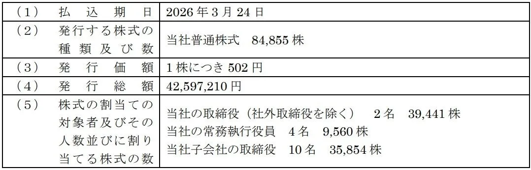 これにより、従業員のモチベーション向上や市場競争力の強化が図られることが期待されています。具体的な発行スケジュールや株式の配分詳細については、公式ウェブサイトにて随時更新される予定です。