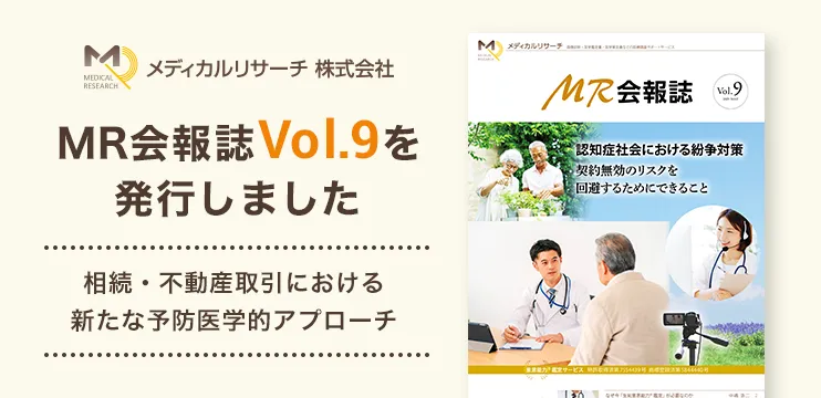 メディカルリサーチ株式会社が発行した「MR会報誌 Vol.9」では、近年の高齢化社会においてますます重要視される「生前意思能力鑑定」の意義と実績について詳しく紹介されています。当社は、創業から10年以上にわたり、医学的見解が必要とされるさまざまな案件に関して、専門の医師チームがサポートしており、特に交通事故や医療過誤において確固たる実績を持っています。