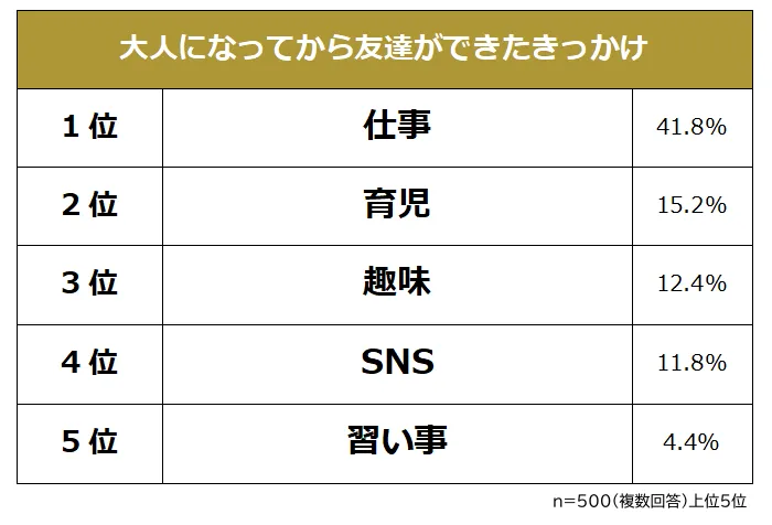 大人になってから友達ができるきっかけランキング