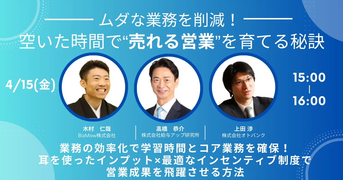 この提携に伴い、2025年4月15日には株式会社給与アップ研究所、BizMow株式会社、さらに音声コンテンツプラットフォーム「audiobook.jp」を運営する株式会社オトバンクが共催するセミナーも予定されています。