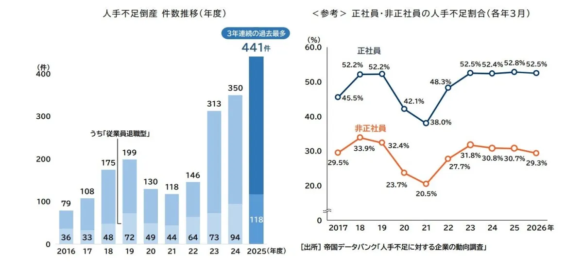 近年、労働市場の変化によって企業の経営態勢が揺らいでいます。特に2025年度の「人手不足倒産」の件数が441件に達し、前年度の350件から約1.3倍に増加したことが株式会社帝国データバンクの調査によって明らかになりました。この問題は、特に建設業、福祉、飲食業といった労働集約型の業界において顕著です。