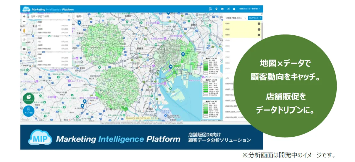 技研商事インターナショナル株式会社が2025年4月に提供を開始予定の「MIP(Marketing Intelligence Platform)」は、店舗販促のデジタル化を支援する革新的な顧客データ分析ソリューションです。顧客の動向やペルソナ情報、さらには販促エリアの最適化を、直感的に分かりやすく分析することができます。