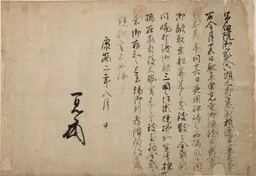 この文書は、現在の兵庫県内にあたる地域の一つ、摂津国川辺郡北部にある六瀬を本拠地にしていた多田院御家人・六瀬頼連によって作成されました。康安2年の8月、頼連は北朝の側に立って常光寺に参加し、戦いへ向かいました。彼の手紙は、神崎橋での南朝勢との戦闘や官軍への具体的な戦術について詳述しています。この合戦は「神崎合戦」として名を知られ、軍記物語『太平記』にも描かれています。