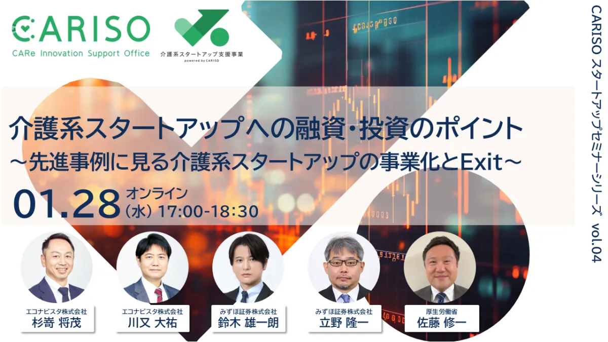 介護業界におけるスタートアップ支援がますます注目されている中、特に「介護系スタートアップへの融資・投資」についての理解を深めるためのセミナーが開催されます。このイベントは、CARISOが主催するスタートアップセミナーシリーズの一環として、介護系スタートアップに関心のある多くの方々に向けて行われます。