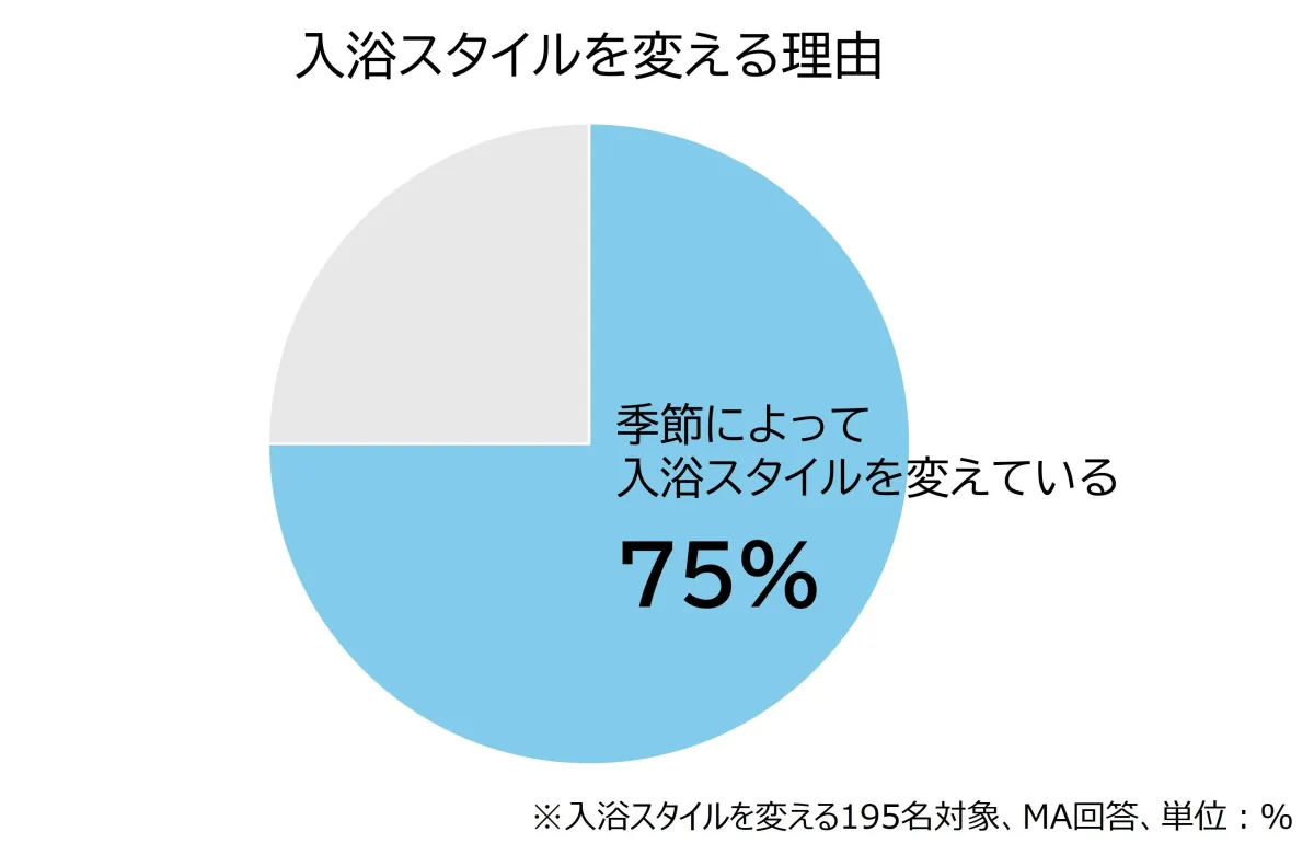 調査によれば、500名の女性のうち195名が「入浴スタイルを時期や気温に応じて変えている」と答え、その多くが「季節の影響」でシャワーのみの入浴を選択していることがわかります。特に、気温が上がる5月ごろから増え始め、夏の間はその傾向がピークを迎えるとのことです。