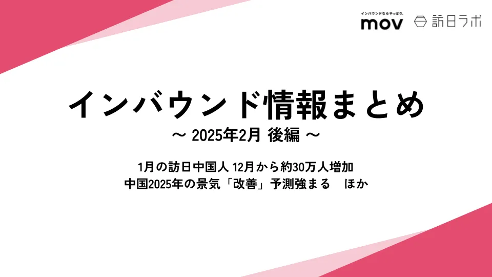 2025年1月、日本を訪れる中国からの観光客数が約98万人に達し、12月からおよそ30万人の増加が見られました。この増加は春節の期間に要因しているわけではなく、年間を通じたトレンドとして注目されています。これに関連して、「訪日ラボ」を運営する株式会社movによる最新のインバウンド情報が発表されました。