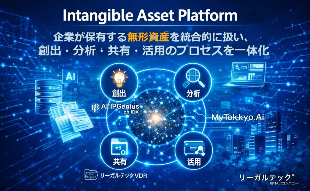 リーガルテック株式会社が新たに打ち出した「Intangible Asset Platform(無形資産プラットフォーム)構想」は、企業が保有する無形資産—発明や特許、技術文書など—を一体的に管理し、最大限に活用することを目指す画期的な取り組みです。このプラットフォームは、以前から開発に取り組んできた「IPGenius」、「MyTokkyo.Ai」、そして「リーガルテックVDR」の三つの製品を統合し、無形資産の創出から活用までのプロセスを支える新しい企業基盤を構築しています。