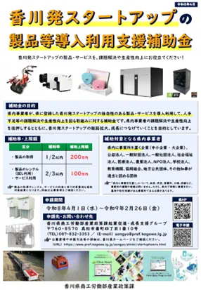 香川県では、地域のスタートアップ企業を対象とした新たな補助金制度が発表されました。この制度は、香川県内に拠点を持つ企業がスタートアップの製品やサービスを活用する際の経済的支援を目的としています。特に、国のJ-StartupやJ-StartupWESTに選定された企業、および香川ビジネスチャレンジコンペで受賞した企業が提供する製品・サービスが対象となるため、質の高い革新的な支援が期待されます。