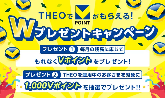 THEOが始めるVポイントプレゼントキャンペーンは、さまざまな特典を提供する魅力的な機会です。運用残高を増やし、条件を満たすことで、Vポイントを効率よく獲得し、さらには抽選でさらなるポイントを得るチャンスも手に入ります。この機会に、ぜひTHEOでの運用を検討してみてはいかがでしょうか。その上で、リスク管理や手数料についてもご確認いただき、賢い投資を目指しましょう!