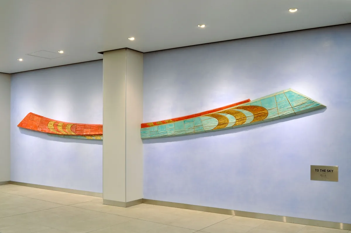 「TO THE SKY」は、東京スカイツリーの開業に際して、2012年に設置された作品であり、東京スカイツリーが空へと伸びる姿を美しく表現しています。この作品は、業平の地に息づく日本の伝統的なイメージと、電波塔としての現代的なビジョンが見事に融合したもので、多くの駅利用者に愛されてきました。