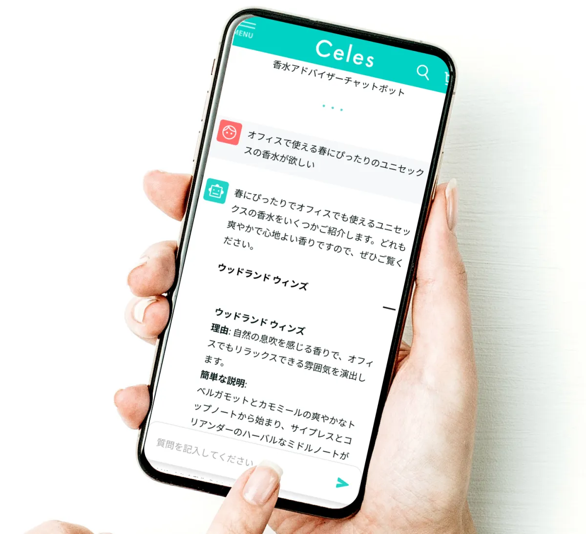 「Celes」は2019年2月から日本フレグランス協会認定の香水スタイリストによる香水提案サービス「Celesセレクト」を運営しており、これまでに10万件以上の香水提案を行ってきました。また、利用者自身が選んだ香水のデータも100万件を超え、口コミは11万件以上に達しています。この豊富な情報を活用し、香水選びのハードルを下げ、初心者でも楽しめる香水の世界を提供するために新たに「AI香水コンシェルジュ」サービスが誕生しました。