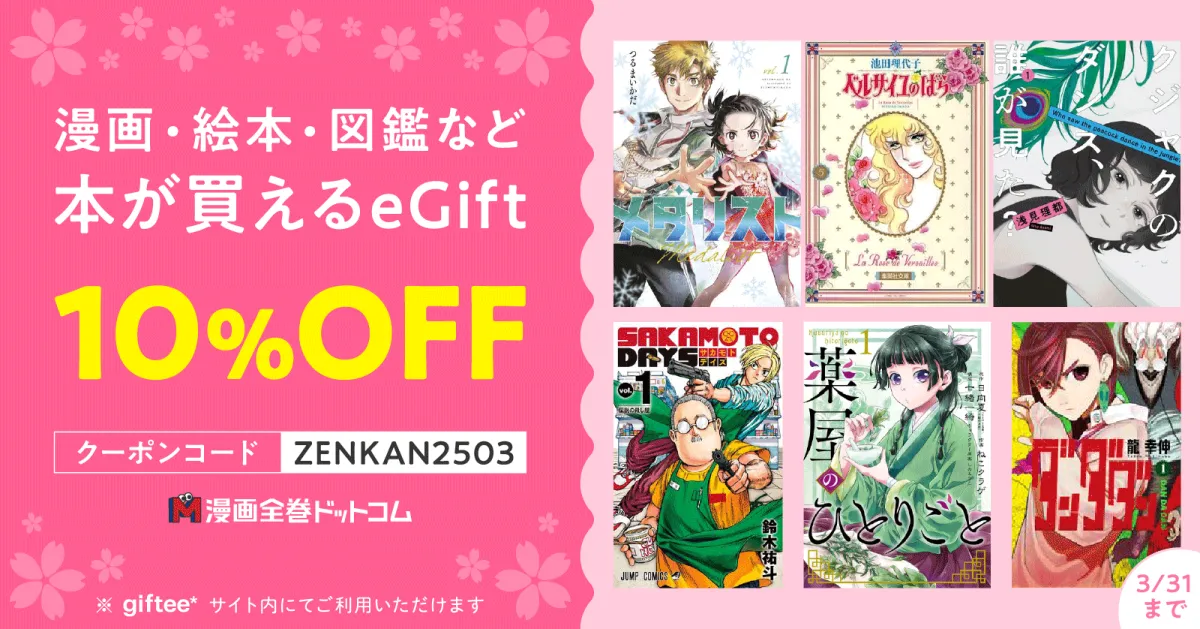 詳しい情報は「漫画全巻ドットコム」の公式サイトまたは「giftee®」のページをご覧ください。