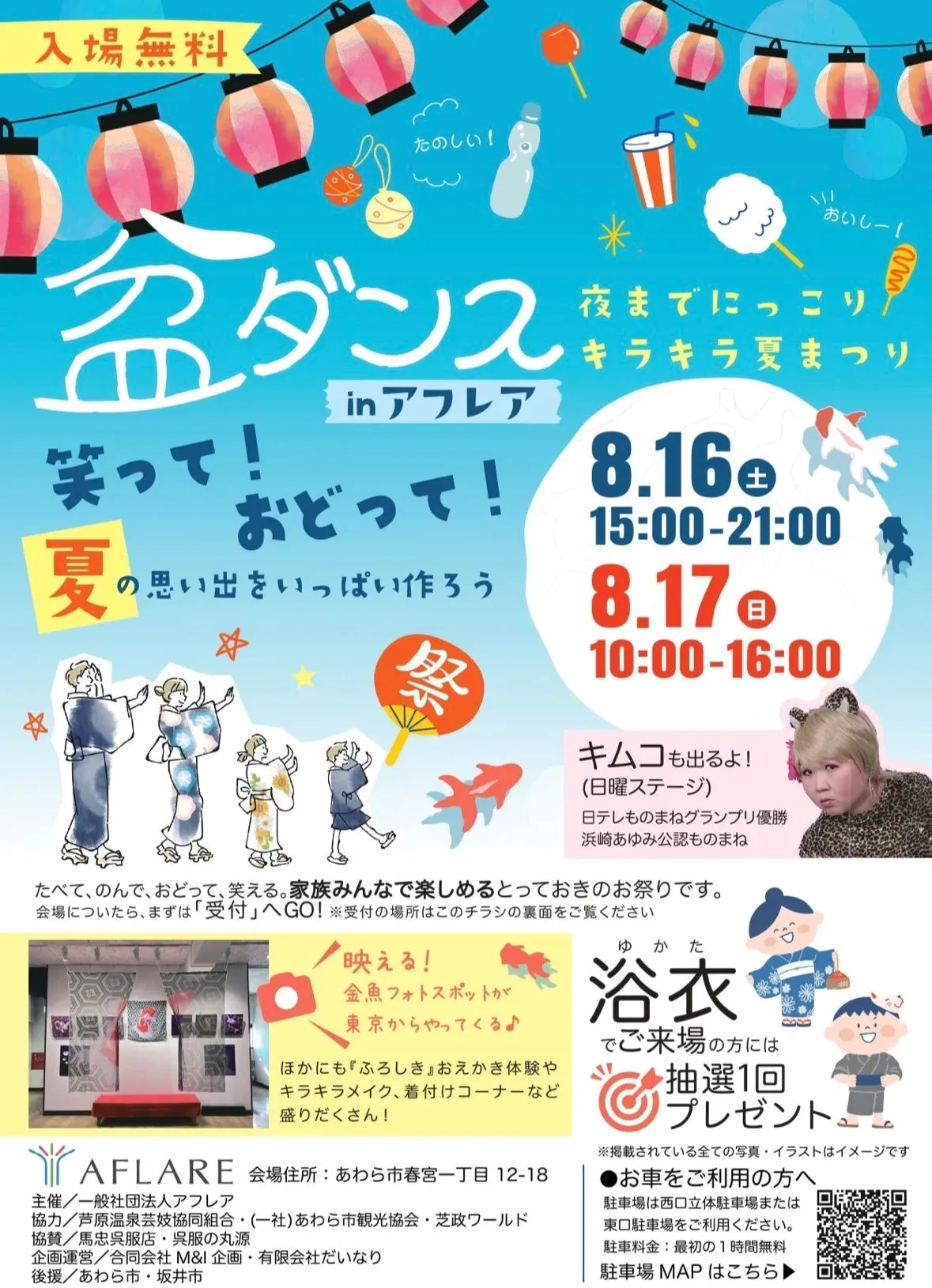 さあ、浴衣を着てアフレアに集合し、笑いと踊りで最高の夏を堪能しましょう!
