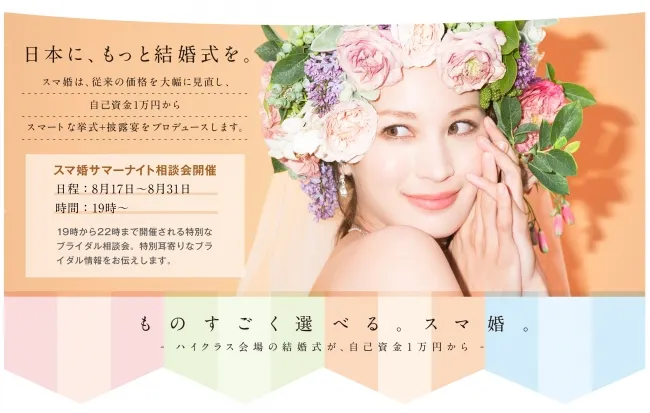 株式会社メイションが運営する『スマ婚』では、8月17日(月)~31日(月)の期間限定で、平日夜19時からのブライダル相談会『スマ婚サマーナイト相談会』を開催します。
