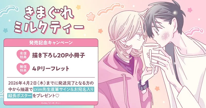 株式会社TORICOが運営するホーリンラブブックスにおいて、crim先生の最新コミックス『きまぐれミルクティー』の発売を祝して特別なキャンペーンが始まります。このキャンペーンでは、対象商品を購入した方の中から抽選で直筆サイン入りの縦長ポスターが贈られます。